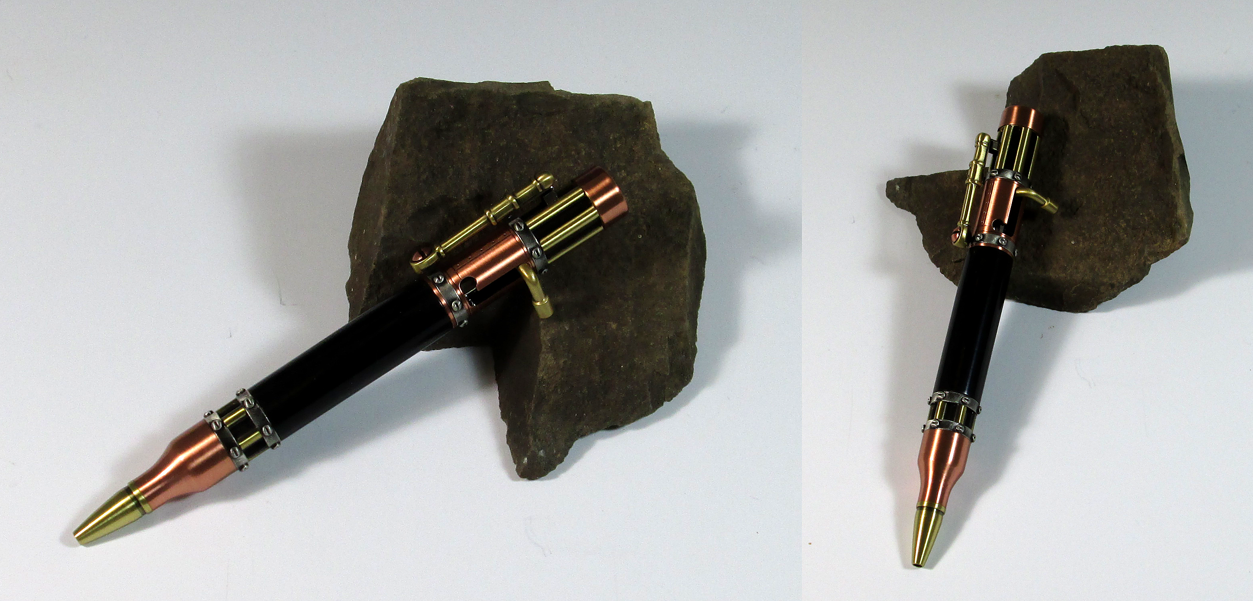 Steampunk bolt-action ballpoint pen; barrel of ebony.