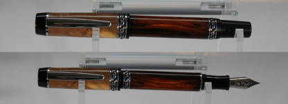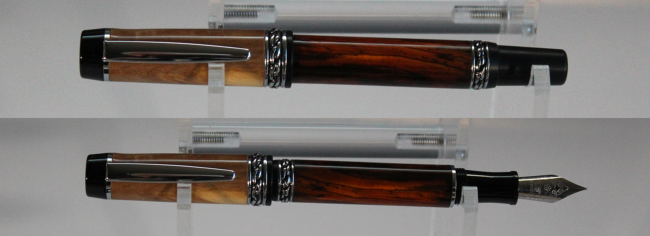 Olympian Elite 2 fountain pen; chrome; cap is olive wood, barrel is cocobolo.