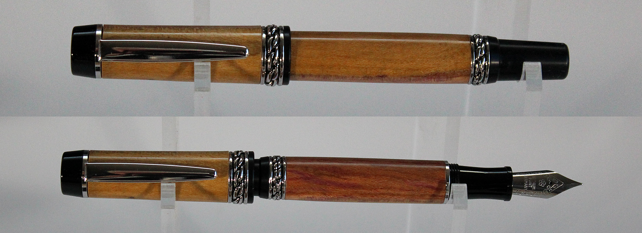 Olympian Elite 2 fountain pen; rhodium with iridium nib; cap and barrel are plum.