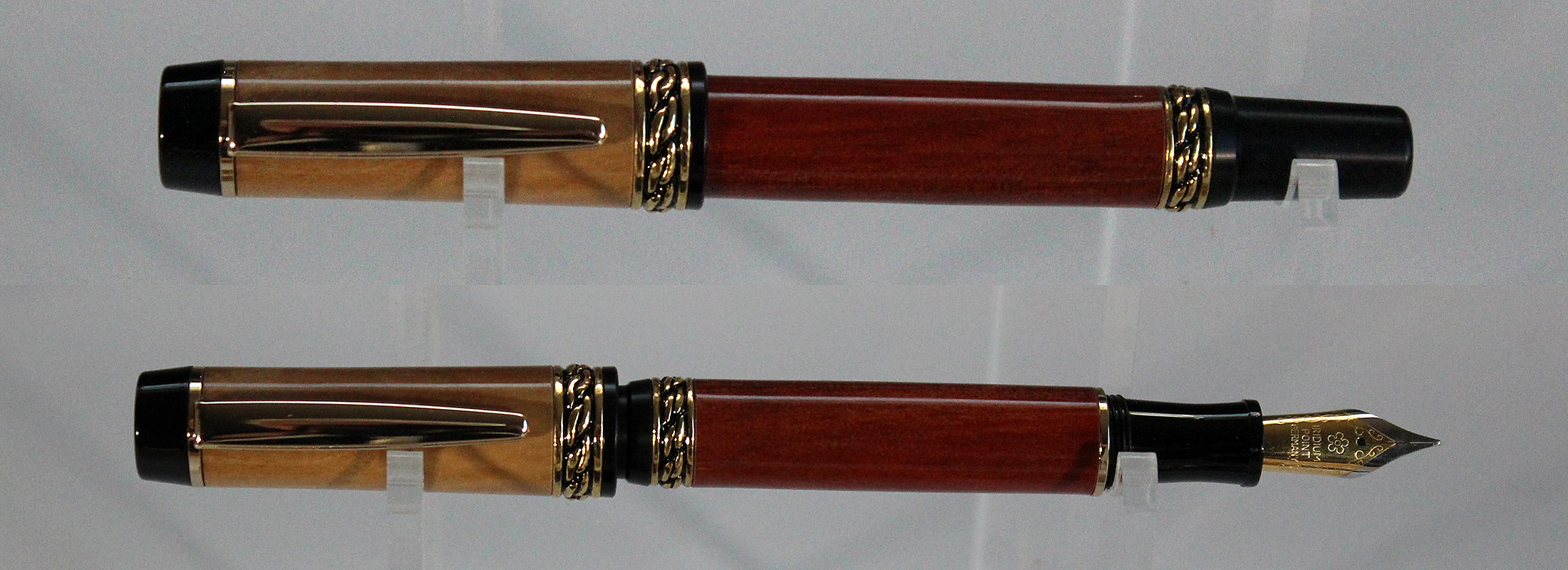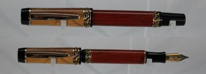 Olympian Elite 2 fountain pen; 24k gold with iridium nib; cap is olive wood, barrel is redheart.