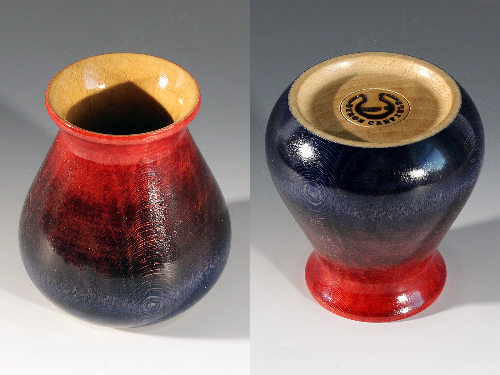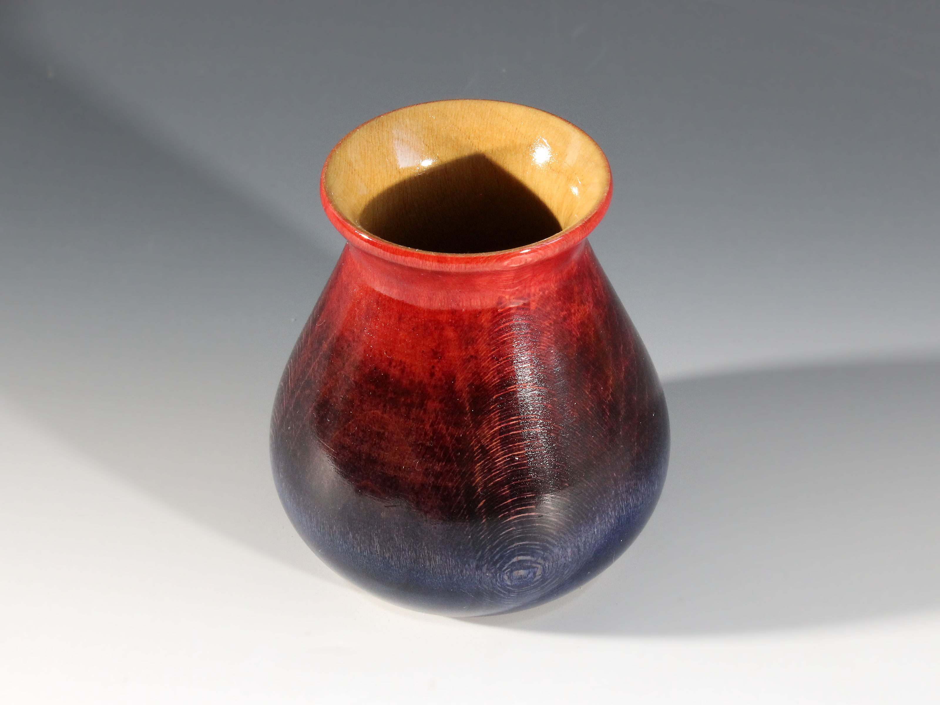 Maple vase; colored with analine dye; 3-3/4″ dia. x 4″ tall.