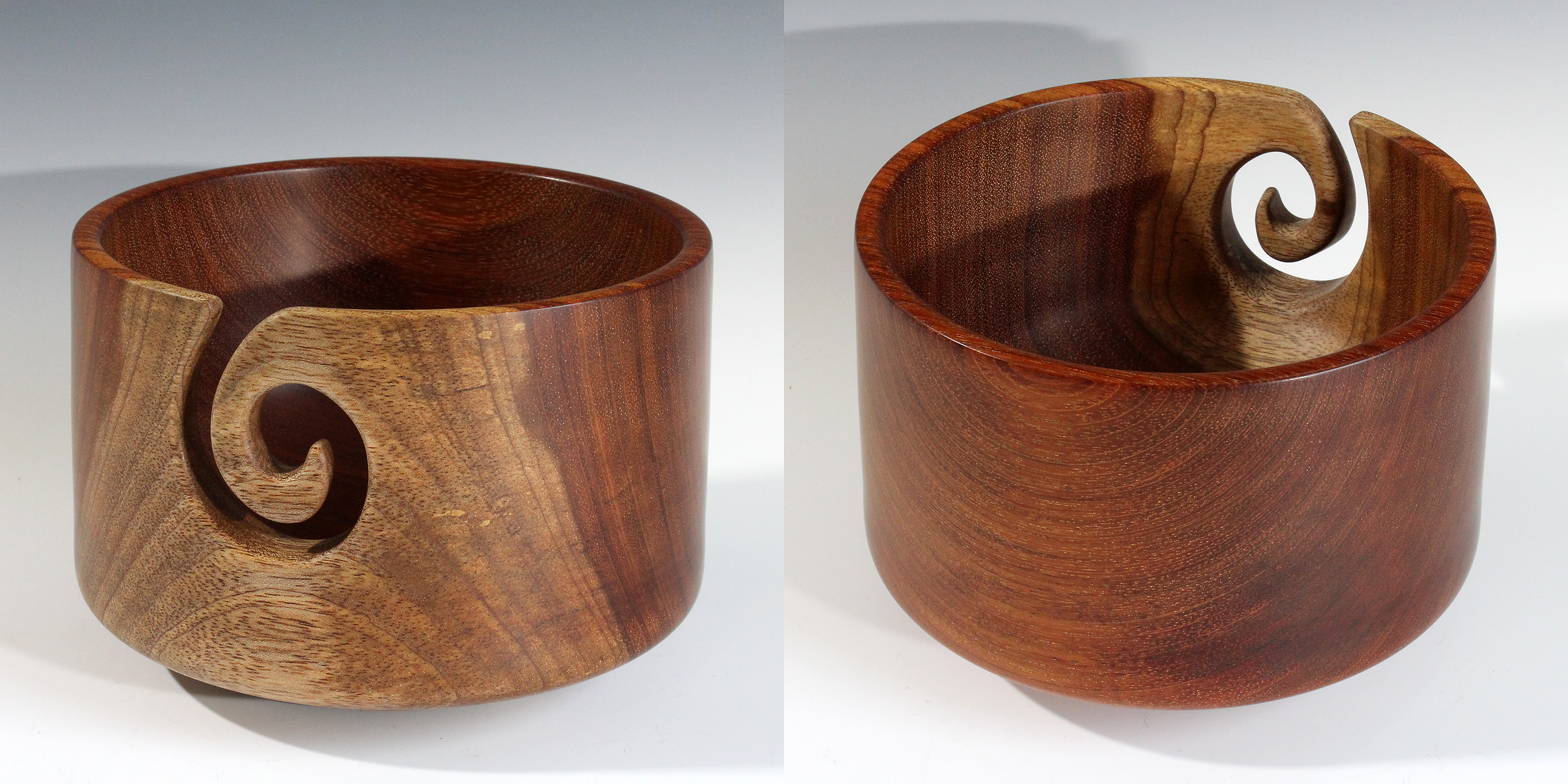 Yarn Bowl, mystery wood (I’ll find out what it is some day) — very dense and heavy; weighs about 2.5 lbs; 6-7/8″ dia. x 4-5/8″ tall.