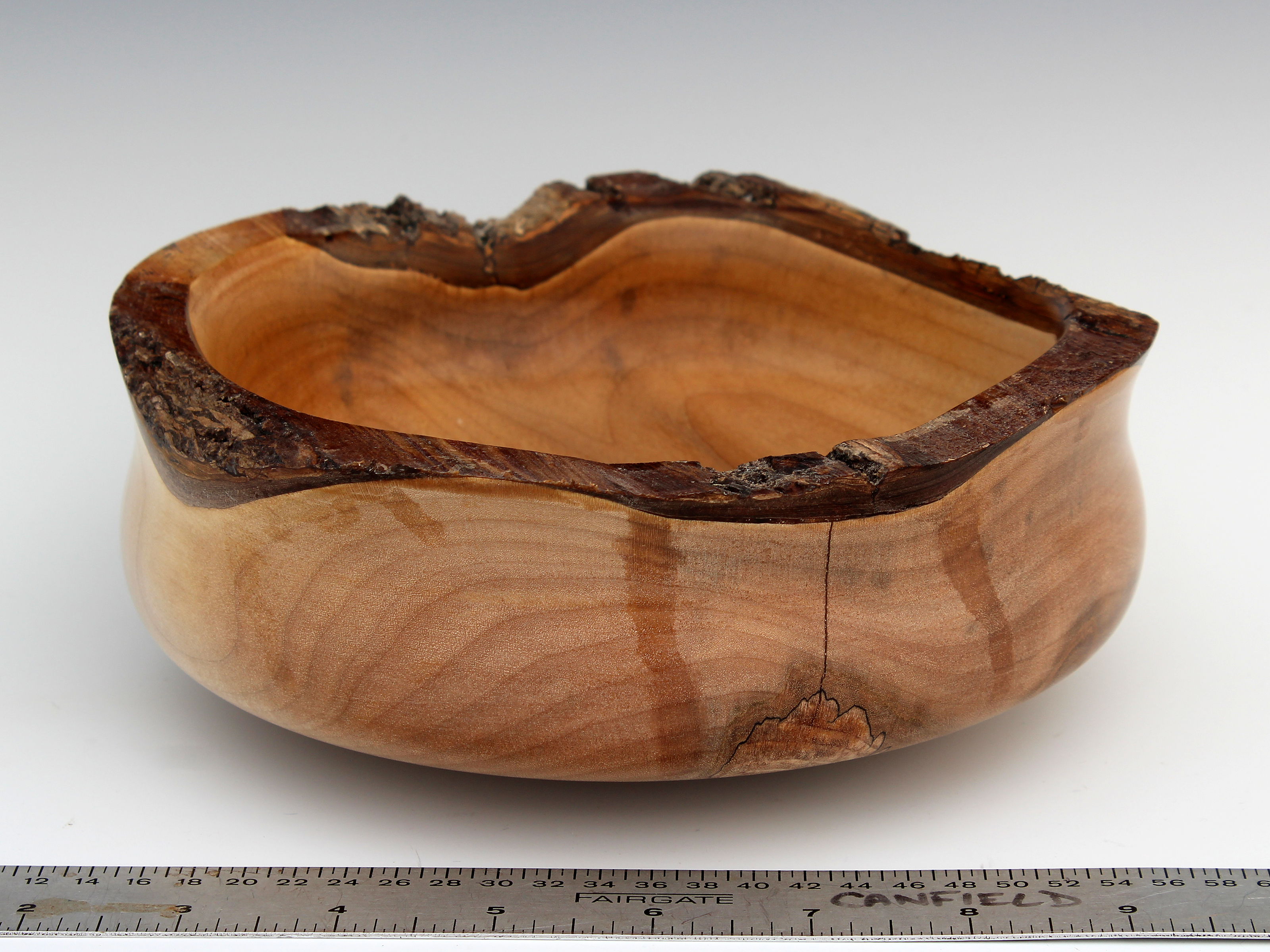 Spalted broadleaf maple natural edge bowl; 7-1/2″ dia. x 2-1/2″ tall; $125 USD (W152)