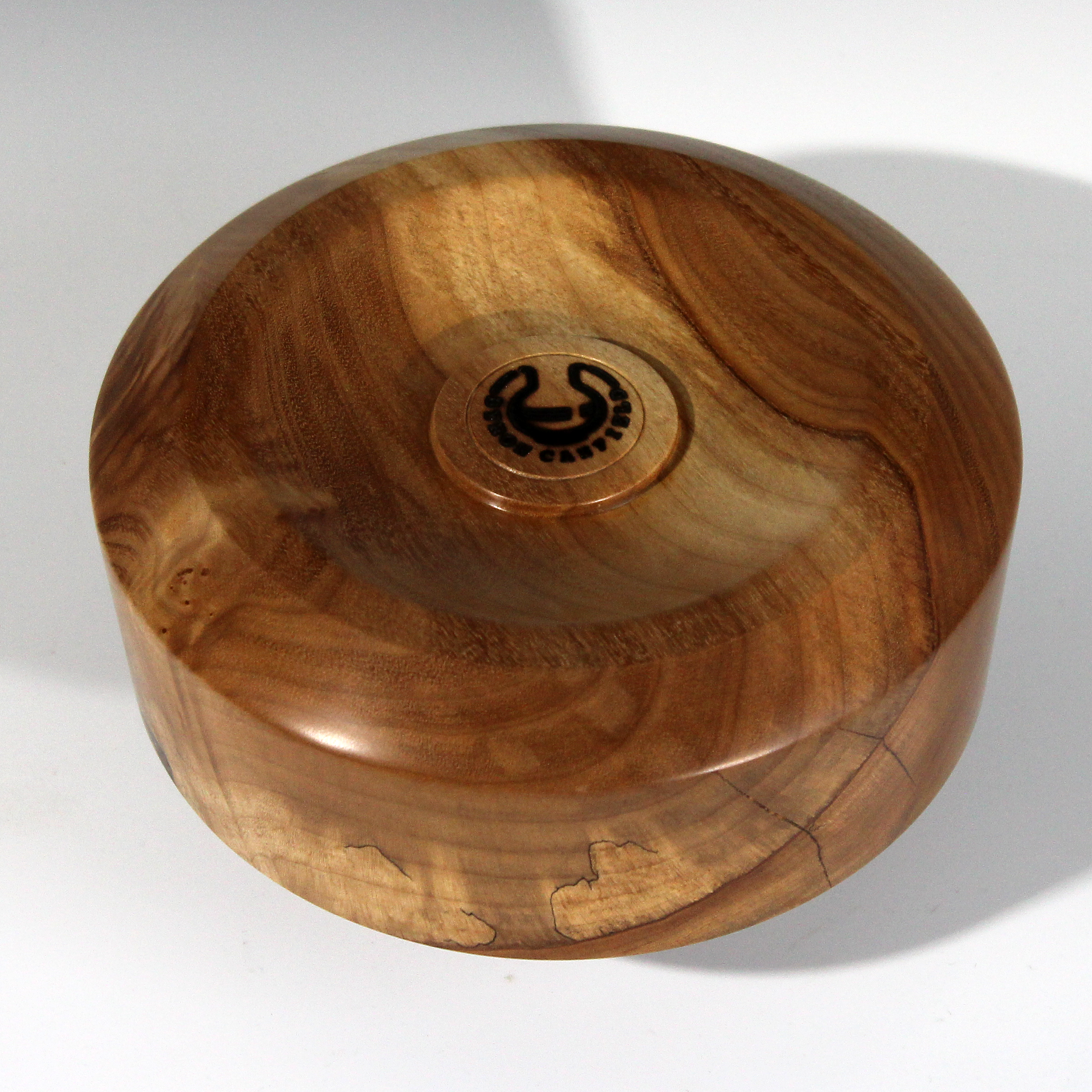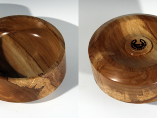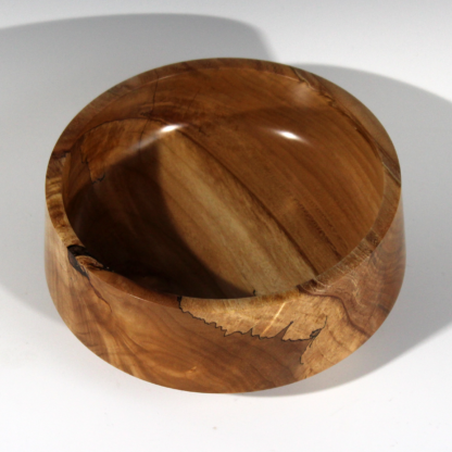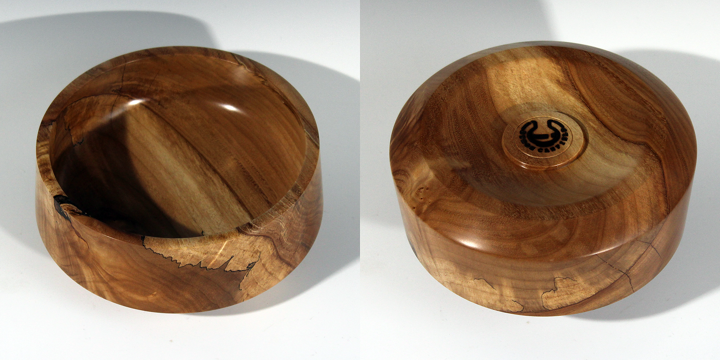 Spalted maple bowl; (big leaf: Acer macrophyllum); from huge tree felled by neighbor homeowner due to hazardous condition, in Lake Forest Park, WA; 6-3/8″ dia. x 2-7/16″ tall; punky areas shored up with CA glue, shellac sanding sealer, and then finished with EEE wax.