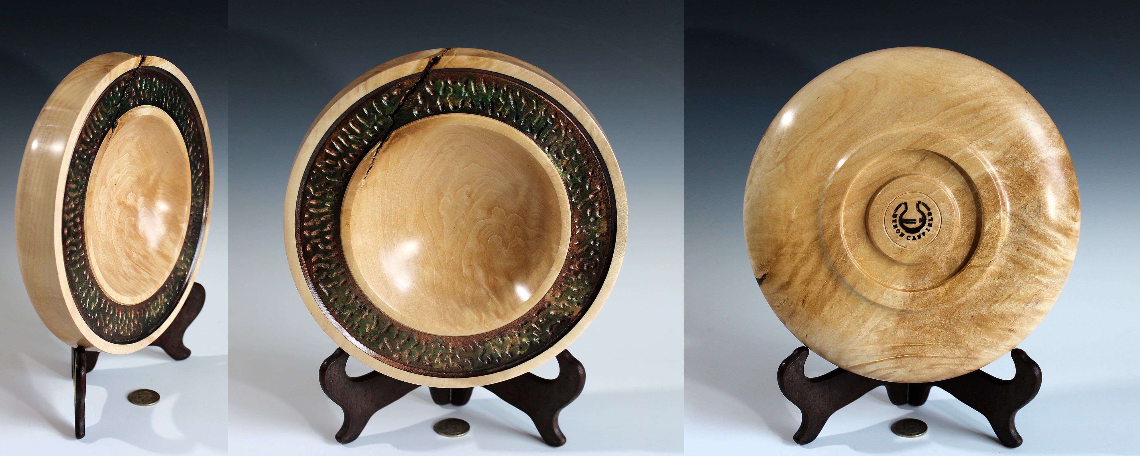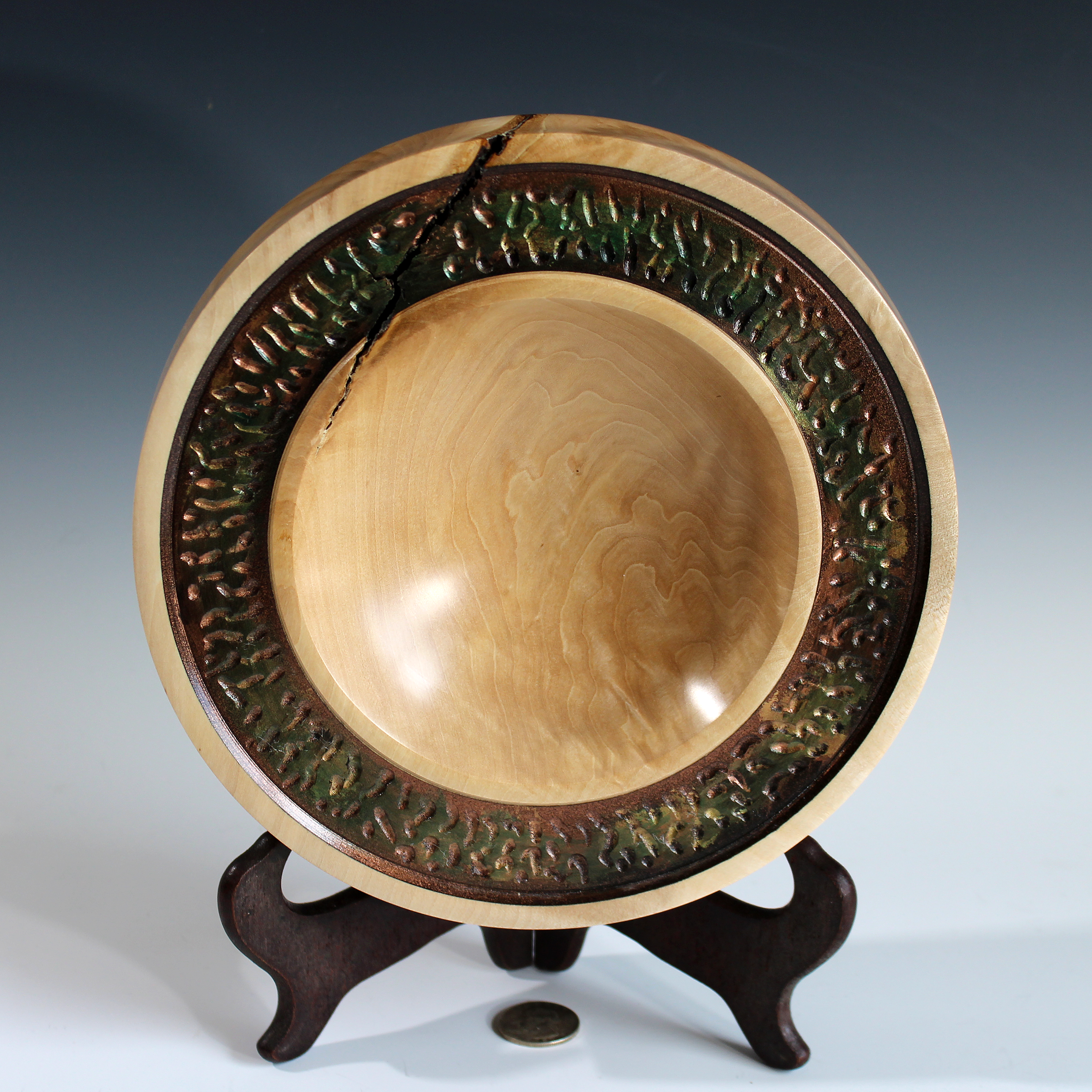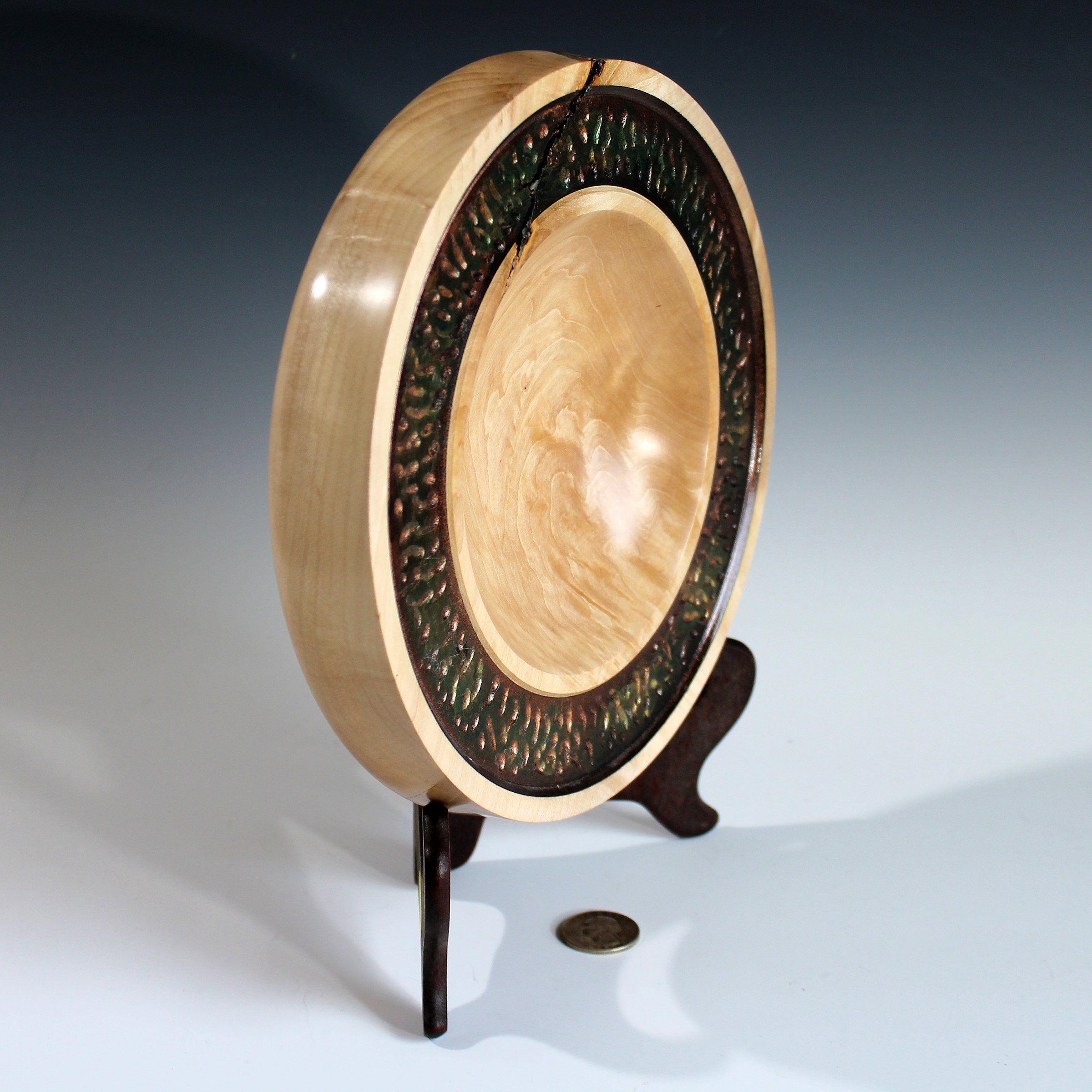 Maple bowl; (big leaf: Acer macrophyllum); from huge tree felled by neighbor homeowner due to hazardous condition, in Lake Forest Park, WA; 8-1/2″ dia. x 1-7/8″ tall.