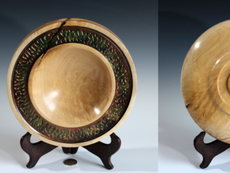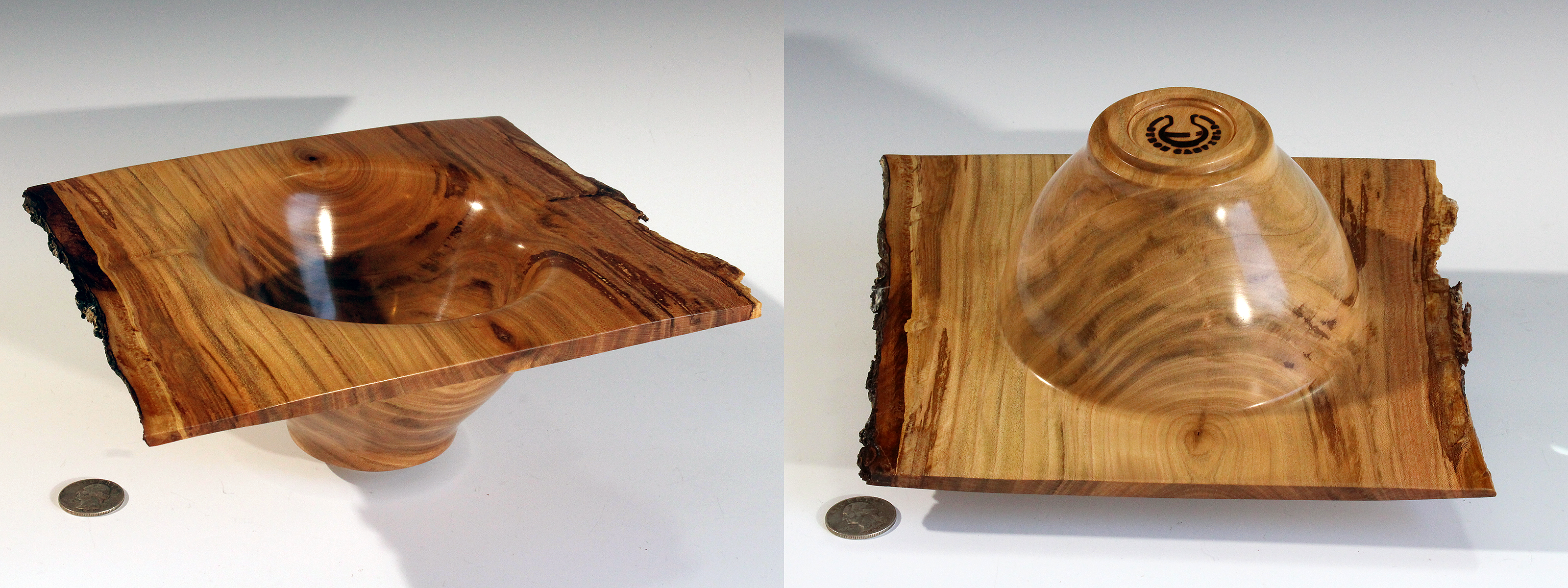 “Winged” natural edge cherry bowl (variety unkown); storm-fallen tree from Kent, WA; 9″ x 7-3/4″ x dia. x 3-1/4″ tall.