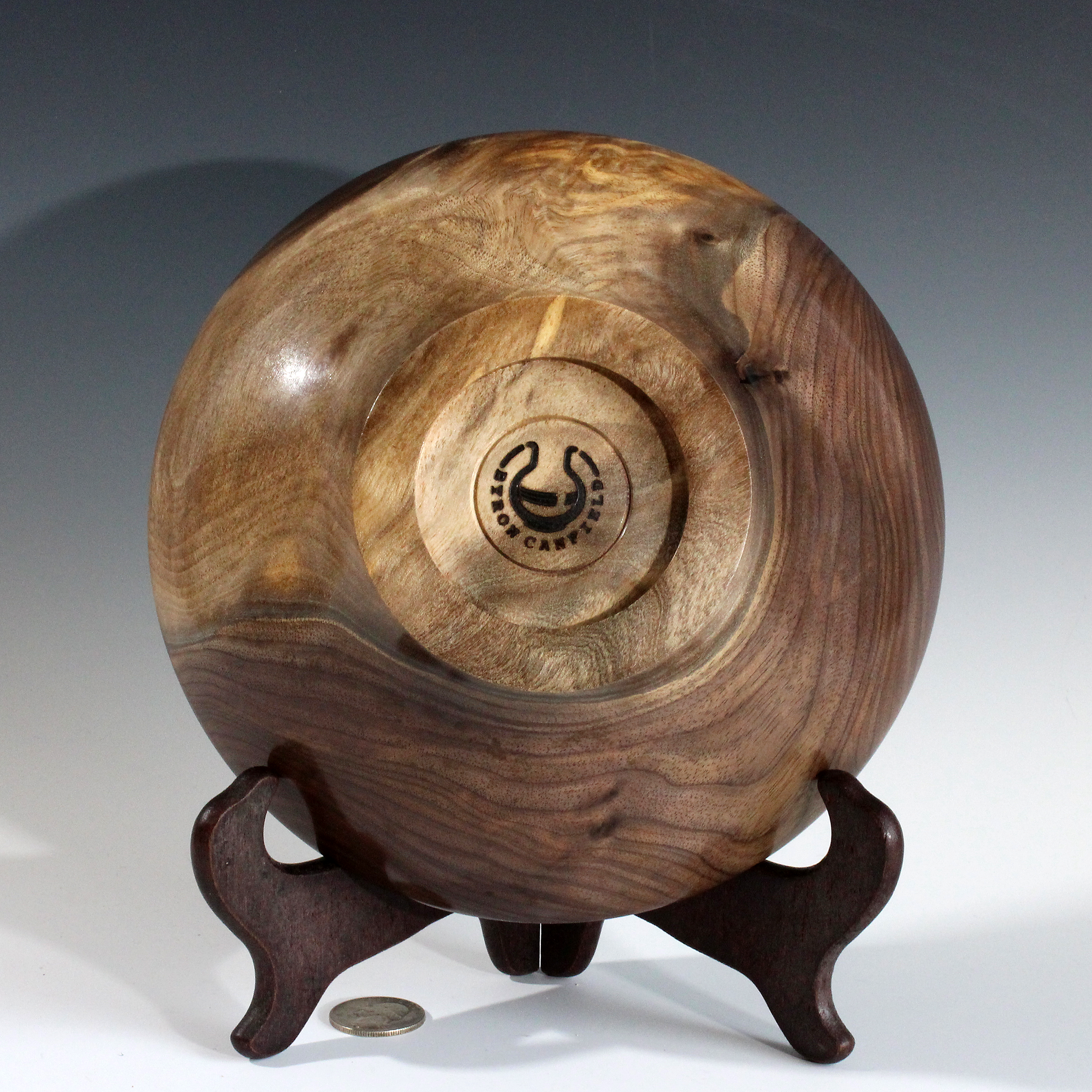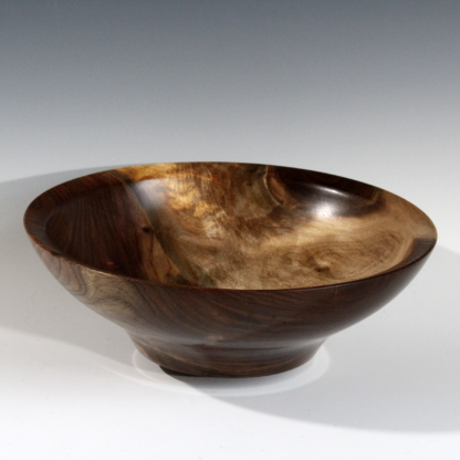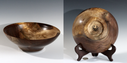 Walnut bowl; Caliofornia Black Walnut (Juglans Californica); 7-11/16″ dia. x 2-3/4″ tall; finished with Danish oil and buffed with Carnuba wax.
