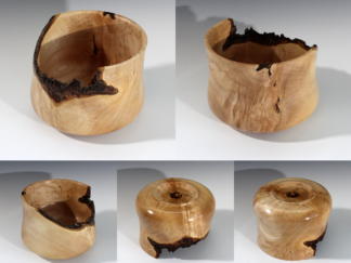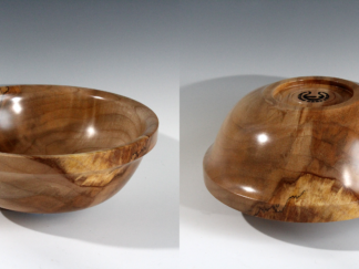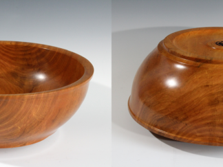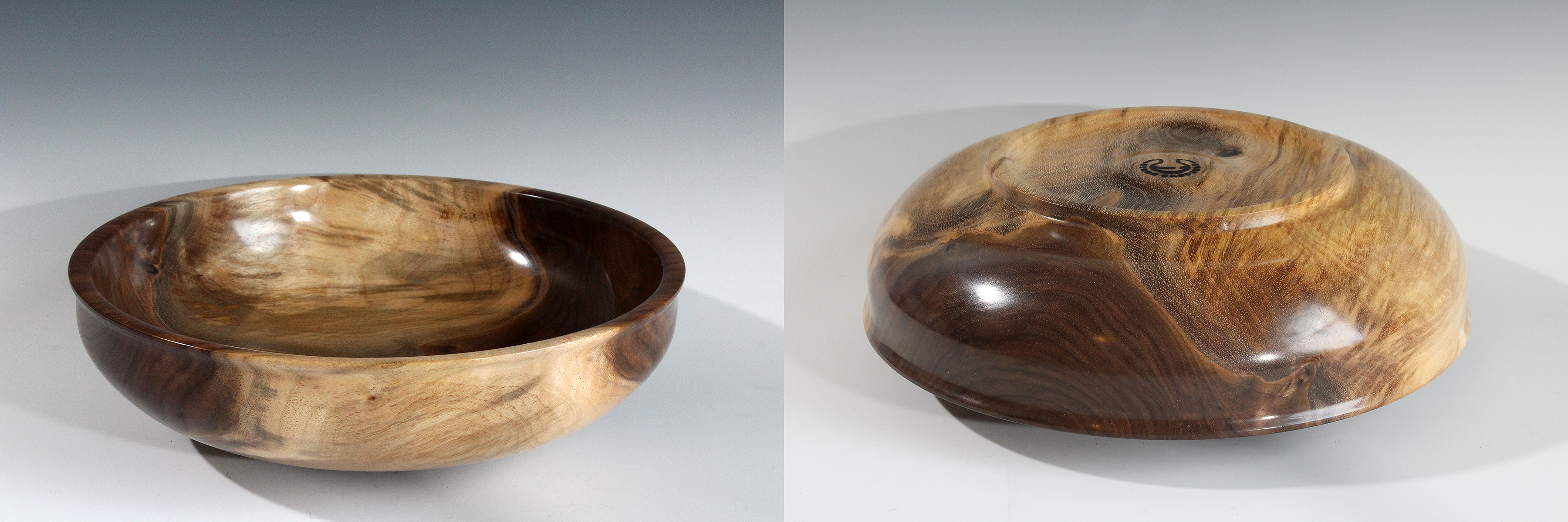 Walnut bowl; California Black Walnut (Juglans californica); 10-1/4 dia. x 2-5/8″ tall; finished with walnut oil and buffed with Carnuba wax.
