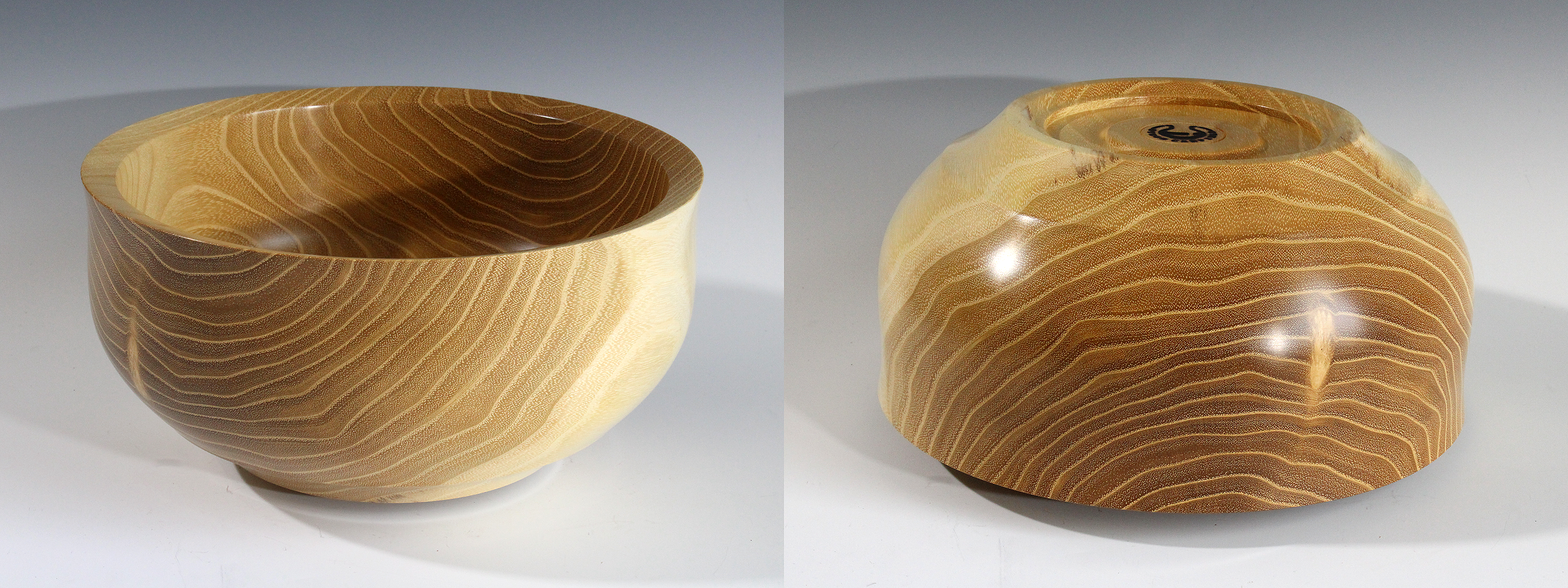 Black locust bowl (Robinia pseudoacaci); finished with Danish oil; 8-7/8″ dia. x 4-1/4″ tall.