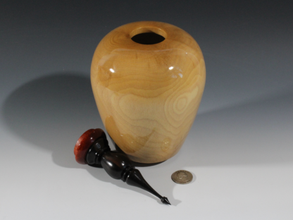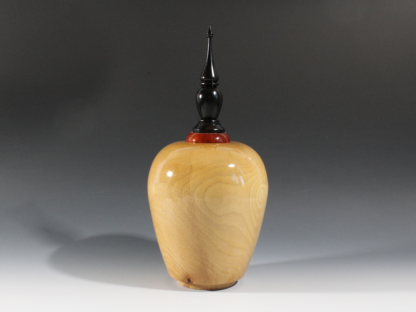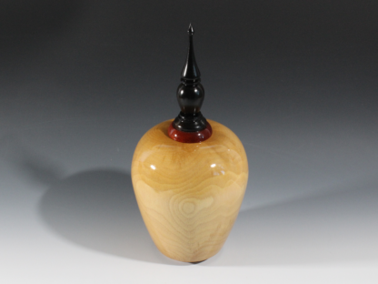 Sycamore urn (not really a bowl), with redheart and ebony finial; 5″ dia. x 11″ tall.