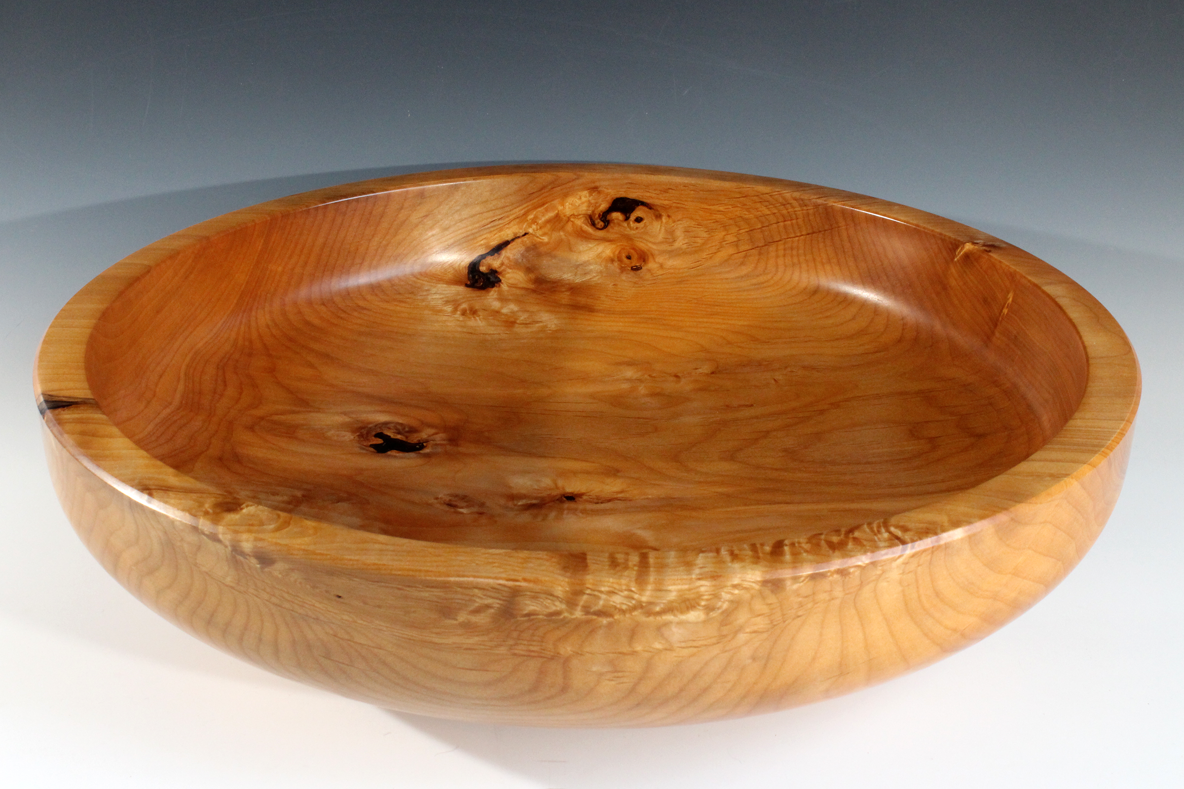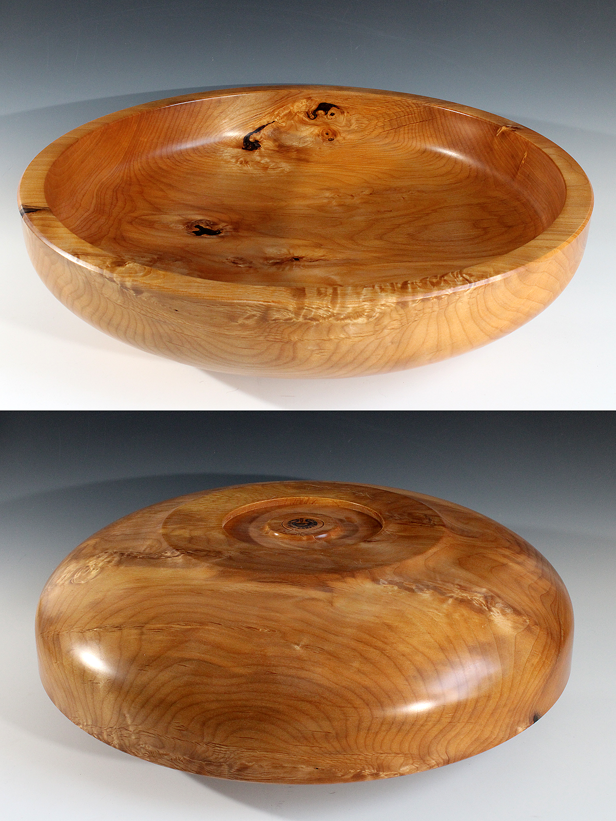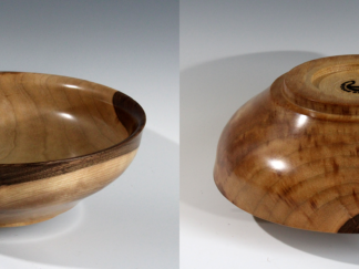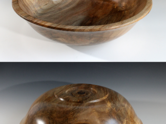 Alder bowl; wood from tree cut down to clear a lot a couple blocks from my house in Ocean Shores; 18-3/8″ dia. x 4-1/4″ tall. $150 (USD)