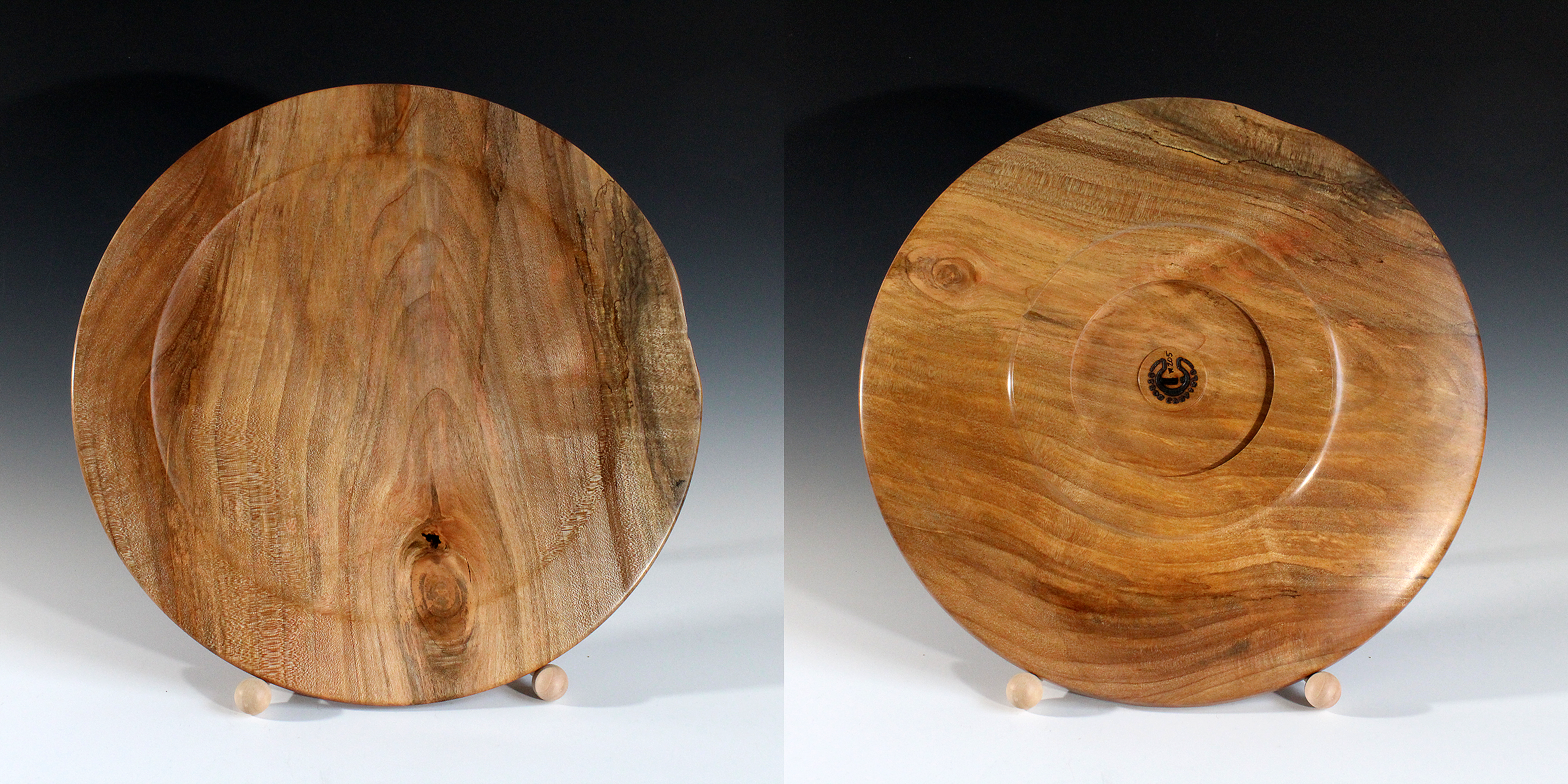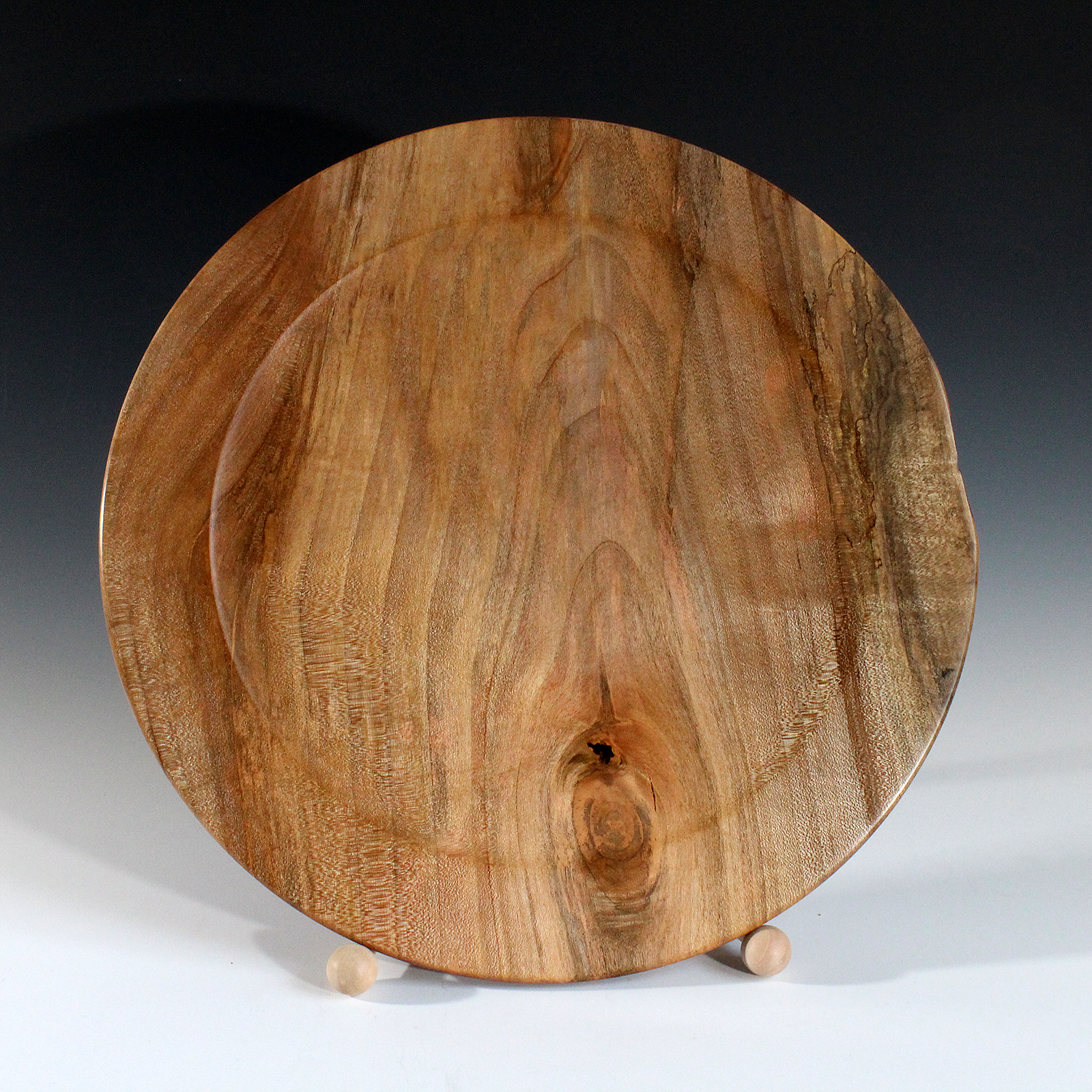 Red Maple platter; and, yes, it has a slight bark inclusion on the upper right (about 2 o’clock) which appears as a flat spot on the edge; 13-1/4″ dia. x 1-3/8″ tall; $125 (USD)