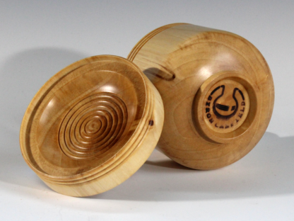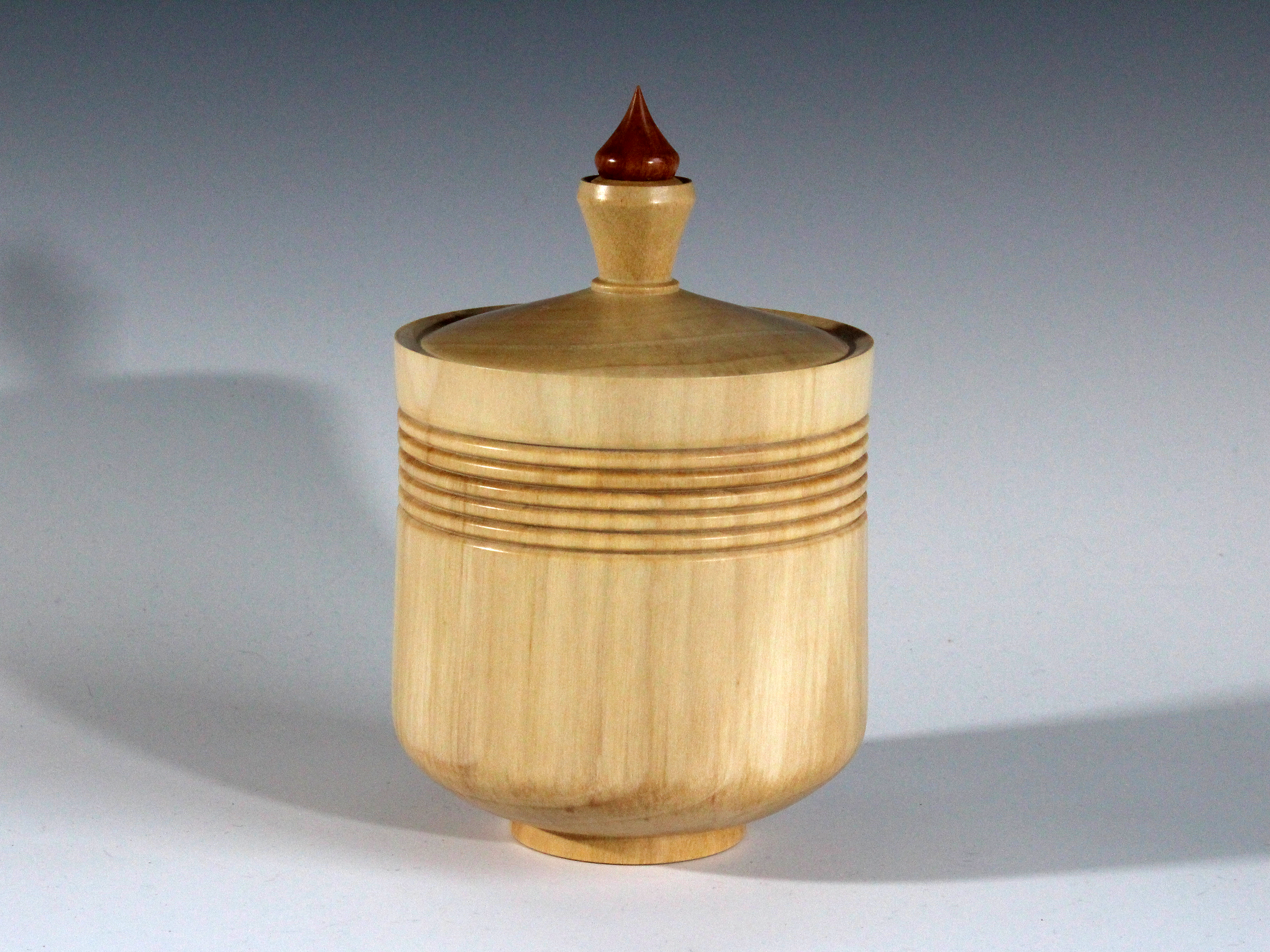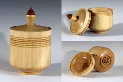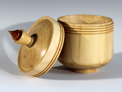 Birch box (lidded bowl) with plum accent; 3-1/8″ dia. x 5-1/8″ tall.